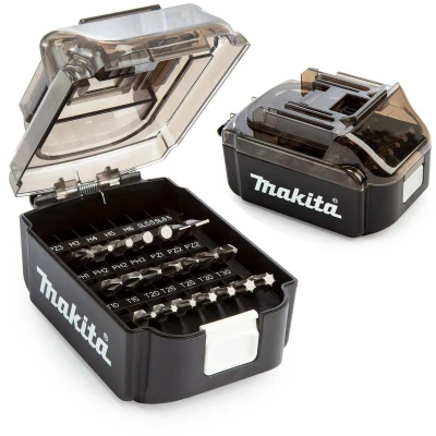 General description The Makita model B-68323 is a 21 piece screw bit set containing a range of driver bits for various applications. Ideal for use in the professional trade and for DIYers alike, this set is supplied in a battery-shaped case that fits into the battery slot in a MakPac case, providing easy storage and transport. The screw bits are designed to be robust, durable, and easy to find. Technical specifications 21 pieces Range of 50mm screw bits Other information Durable and robust construction