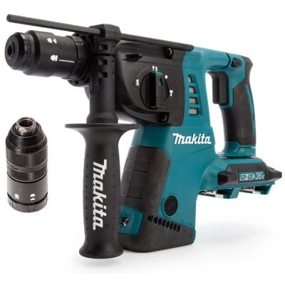 General description The MAKITA DHR264Z Hammer is a powerful tool designed for heavy-duty applications. It operates with a robust 36V motor that utilizes two 18V batteries, allowing for flexibility in battery amperage. This hammer features three working modes: rotation, percussion, and a combination of both, making it versatile for various tasks. Technical specifications Power: 36V motor Battery compatibility: Two 18V batteries (different amperage can be mixed) Working modes: Rotation, percussion, rotation + percussion Quick change chuck: SDS-Plus to cylindrical Brush change: External for easy maintenance Vibration reduction: Body divided into two parts Lighting: High luminosity LEDs Battery indicator: Independent low battery indicator for each battery Other information XPT technology: Protects against dust and moisture Rotation reversal switch: Allows for easy adjustment of the spatula or chisel position