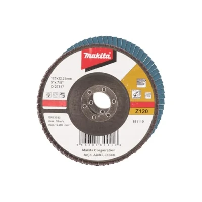 Zirconia aluminium coating Fibre glass, angled backing Ideal for stainless steel and metal Suitable for heavy stock removal under high pressure and heat Lasts up to 10 times longer than conventional bonded abrasive discs Diameter 125mm Grit 120 Pack quantity 1, Weight: 0.1763698096 Pounds, Manufacturer: Makita