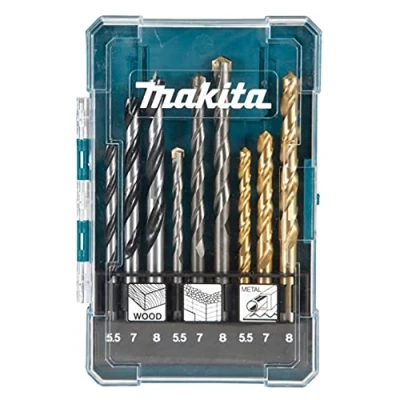 General description The Makita D-71978 9 Piece Drill Bit Set is designed for versatile drilling applications in metal, masonry, and wood. This comprehensive set includes specialized bits to ensure precision and efficiency across different materials. Technical specifications 3 Brad point drill bits for wood: 5.5mm, 7mm, and 8mm diameter 3 HSS drill bits for metal: 5.5mm, 7mm, and 8mm diameter 3 TCT drill bits for masonry: 5.5mm, 7mm, and 8mm diameter Other information Supplied in a plastic case with a transparent front for easy identification of the bits.