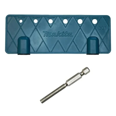 Efficient chainsaw sharpening Equipped with a magnet so can be easily attached to the guide bar Complete with holes for checking the round file’s outer diameter Sharpening angles of 25 and 30 degrees are displayed on the angle plate Work holding device used as a fixture, Manufacturer: Makita