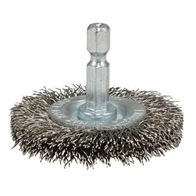 50mm diameter 0.3mm crimped stainless steel Brush with shaft Metal, mild steel, stainless steel, inox, Manufacturer: Makita