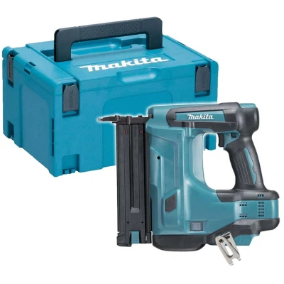 General description The MAKITA DBN500ZJ 18V Brad Nailer is a powerful and versatile tool designed for precision nailing in various applications. It operates on an 18V Li-ion battery (not included) and is capable of firing 18 gauge brads ranging from 15mm to 50mm in length. With its lightweight design and slim nose, this brad nailer allows for easy maneuverability and visibility in tight spaces, making it ideal for both professional and DIY projects. Technical specifications Weight: 3.5kg Magazine Capacity: 110 Brads Fires: 18 Ga Nails Brad range: 15-50mm Shots per charge: 1,000 Usage Rocker switch for selecting between sequential and bump fire mode LED job light for visibility in dark work areas Designed for easy access to tight spaces Other information Comes as a Bare Unit, No Battery or Charger MakPac case included