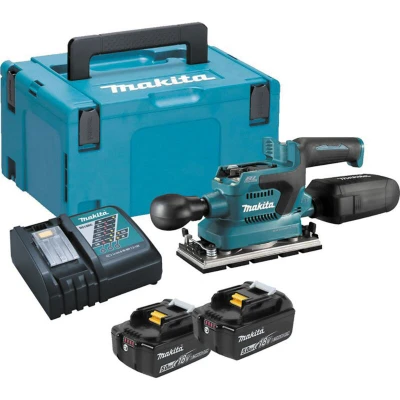 Makita DBO382RTJ 18V Li ion LXT Brushless Finishing Sander Complete with 2 x 5.0 Ah Batteries and Charger Supplied in a Makpac Case