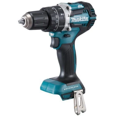 General description The Makita DHP484Z Brushless Combi Drill is a powerful cordless hammer driver drill designed for efficiency and performance. It features a brushless motor that enhances run time and power, making it suitable for various drilling tasks. This model is an upgrade from the DHP480, offering improved torque and durability. Technical specifications No Load Speed: 0-500/0-2,000/min Impact Rate: 0-7,500/0-30,000/bpm Max Torque: 30/54Nm Settings: 21 + drill Drilling Capacity: Wood 38mm, Masonry 13mm, Steel 13mm Weight: 1.6kg Installation Self-locking chuck for easy accessory changes with one hand Usage Variable speed control via trigger Forward/reverse rotation for versatile applications LED job light for visibility in low light conditions Ergonomic anti-slip grip for comfort and control Other information Compact overall length of 182mm Electric brake for added safety Aluminium gear housing for better force transmission XPT system for protection against dust and rain Bare