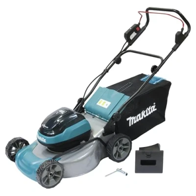 Powered by two 18V Li-ion LXT slide type batteries (not included), not compatible with G-Series batteries 460mm cutting width Two modes for normal and noise reduction Robust steel deck with washable cutting deck Cloth grass box with 60 litre capacity and grass level indicator, Weight: 57.32018812 Pounds, Manufacturer: Makita