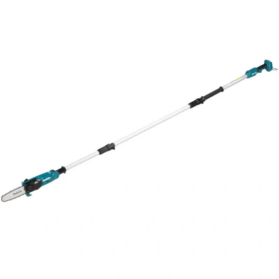General description The Makita DUA200Z is an 18V LXT cordless telescopic pole saw designed for efficient pruning and trimming of high branches. It features a lightweight design and a brushless motor, making it suitable for both professional arborists and home gardeners. With its adjustable head and telescopic reach, users can easily access branches up to 2.5 meters high without the need for ladders, enhancing safety and convenience. Technical specifications Voltage: 18V LXT Guide Bar Length: 200 mm (8') Chain Type: 80TXL-38, 0.325' pitch, 0.043' gauge Chain Speed: 6.7 m/s Motor: Brushless Oil Tank Capacity: 55 mL Telescopic Shaft Length: 1.6 m to 2.5 m Head Angle Adjustment: 9 positions, ±60° Weight (with battery): 3.2 – 3.5 kg Dimensions (L x W x H): 1,620 – 2,520 x 85 x 134 mm Noise Level: Sound pressure 77 dB(A), Sound power 86 dB(A) Vibration Level: ≤2.5 m/s² Protection: XPT (eXtreme Protection Technology) for enhanced dust and water resistance Compatibility and accessories