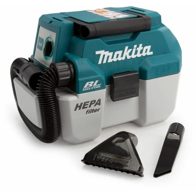 AmazonBrushless motor For wet and dry use Blower function HEPA filter L-Class; removes 99. 0% of dust with Limit Value for occupational exposure >1. 0 mg/m3 Variable suction power control; high and low Flexible hose with on-tool storage Foldable handle Run time with 18V 5. 0 Ah Li-ion battery (not included): low setting 60 minutes and high setting 30 minutes Dust bag capacity 7. 5 litres, tank capacity (wet) 4. 5 litres, Weight: 8.81849048 Pounds, Manufacturer: Makita