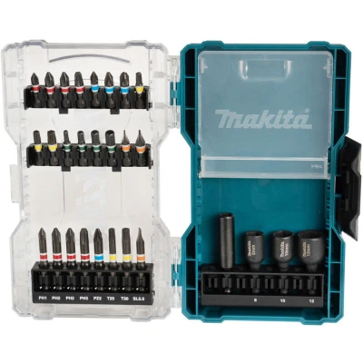 General description The Makita E-07048 is a versatile 28-piece drill bit set designed for various screwdriving tasks. It comes in a convenient accessory box with a transparent lid, making it easy to store and access the bits. Technical specifications Pack Quantity: 28 pcs Net weight: 0.46 kg Product dimensions (L x W x H): 3.5 x 23.6 x 24.6 mm Includes: 28x Torx / PH / PZ screwdriver bits (25 mm and 50 mm) 1x 3/8" socket adapter 1x Magnetic holder