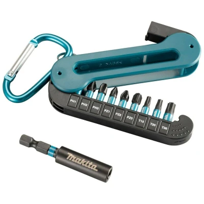 General description Makita has launched its latest accessory series for impact drivers – the Impact Black range. This high durability range is designed for professional use, featuring a unique black coating that prevents rusting and ensures longevity. The Impact Black screw bits are 20% more durable than standard screw bits, which helps lower ongoing maintenance and replacement costs. Technical specifications Set includes: PH1, PH2, PH3, PZ1, PZ2, PZ3, T15, T20, T30 Magnetic Bit Holder: 60mm Case dimensions: Length: 100mm, Width: 38mm, Height: 16mm Compatibility and accessories Suitable for impact wrenches due to high torque Includes a handy plastic holder with carabiner for easy transport Usage Absorbs hard impacts when screwing screws or placing the screw head on the surface Compact set for excellent portability, can be easily stored or carried in a pocket