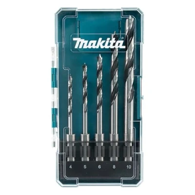 Suitable for wood Brad point For SDS-Plus Hammers 5 piece sets supplied with a cardboard counter display 4mm diameter x 105mm overall length x 43mm working length 5mm diameter x 116mm overall length x 52mm working length 6mm diameter x 123mm overall length x 57mm working length 8mm diameter x 147mm overall length x 75mm working length 10mm diameter x 163mm overall length x 87mm working length Assortment in a clear cover plastic case, Manufacturer: Makita