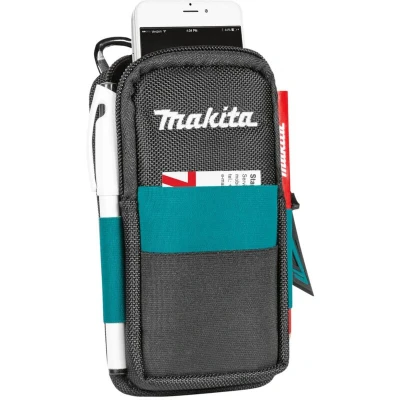 General description Modern design for everyday use, the Makita E-05583 Ultimate Mobile Smart Phone & Pen Pouch Holder Strap System offers a unique solution with a quick clip-on, clip-off feature on the back. It is universally sized to fit most popular smartphones and includes a handy front pocket for business cards, credit cards, and driver's licenses. Additionally, it comes with a carabiner for keys and an elastic sleeve for a pen or pencil. Multiple lining layers of foam and air mesh provide protection from dirt and dust, making it ideal for use on a building site. Technical specifications Dimensions: Not specified Weight: Not specified Material: High-quality polypropylene tape, real leather (1.8 to 2.0mm thickness), and foam Features: Waterproof bottom, anti-slip technology, durable riveting Compatibility and accessories Compatible with all Makita work belts Can be used with a variety of Makita bags Elastic loops for securing tools and accessories Tool loops available in 3 pack
