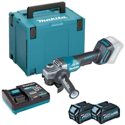 General description The Makita XGT® 40Vmax Brushless Paddle Switch Grinder is designed for enhanced safety and performance. It features a safety paddle switch for operation, a brushless motor with a soft start function for increased durability, and multiple safety features including an electric brake, anti-restart function, and Active Feedback Sensing Technology (AFT) that shuts down the tool if the rotation speed suddenly slows down. The tool-less wheel cover is adjustable to any desired position, making it user-friendly. Technical specifications No Load Speed: 8,500/min Disc Diameter: 115mm Bore: 22.23mm Weight: 3.0kg Compatibility and accessories Supplied with: 2 x 40V 2.5Ah Li-ion XGT 40Vmax Batteries 1 x DC40RA XGT 40Vmax Battery Charger 1 x Side Handle 1 x Lock Nut Wrench 1 x A-80640 Grinding Wheel 115 x 6mm 1 x Type 4 MAKPAC Carry Case