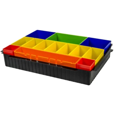 Organiser inlay with inserts suitable for use with Makpac Type 1 Case To keep all accessories organised and tidy Versatile organiser Easy identification and organisation of smaller parts Containers included: 1 x green L150 x H70 x 95, 2 x blue L95 x H70 x W95, 7 x yellow L100 x H70 x W50, 1 x orange L240 x H70 x W45, 2 x red L50 x H70 x W50, Weight: 1.93345403774 pounds, Manufacturer: Makita