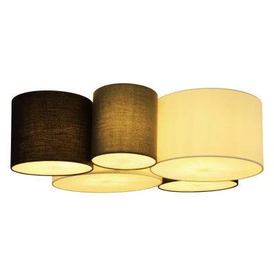 This ceiling lamp from the Makki series (90x76 cm) is a wonderful addition to your interiors. The 26 cm ceiling lamp consists of five cylindrical textile shades of different diameters, two of which are white and black and one grey. These are provided with opal plastic at the bottom and can be equipped with E27 LED bulbs of your choice, which gives you the opportunity to individually determine light color and brightness. With other models of the same series, you can set stylish accents in your four walls and complete the overall picture. Product features: Ceiling light metal white, textile, plastic opal, lxwxh: 900x760x260mm, excl. 5x e27 led 15w 230v