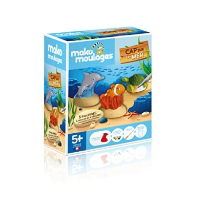 With this creative Mako moulding kit, mould and decorates 3 sea animals: clown fish, dolphin & baby and turtle. The plaster bags are pre-dosed, for very easy use for the child: the whole dose, a little water, and hop in the mould. The latex mould is very detailed and does not leak Can be reused to infinity! Mako moldings, joy at your fingertips Created and manufactured in France with ethical and quality! From 5 years old Contains 3 latex molds, 3 pre-dosed bags of 80 g plaster, 6 pots of paint 5 ml, 4 crossbones, 1 brush, 1 game instructions, Manufacturer: Mako Creations