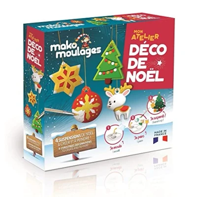 MAKO MOULAGES, YOU TO PLAY TO CREATE EVERYTHING! : My Christmas Deco workshop! With this complete DIY workshop, make your 4 cute Christmas tree decorations (a reindeer, a tree, a Christmas ball and a star) to hang in your tree before the holidays! A complete craft kit for fun alone or with others! HANDKEY CRAFT KIT: Water, plaster, paint and moulds, all made in France. Our mako moulages creative kits contain all the materials you need to mould, remove and paint your decorative objects and then have fun with it. Perfect for a gift or to keep your child busy on Wednesday, weekend, holiday... Quality and durable content: 1 mould with 4 shapes, 2 bags of 80 g plaster, paint, 4 gold wires for hanging decorations in the tree. EASY TO MAKE MANUAL ACTIVITY: With a bag of pre-dosed plaster: the whole dose and a little water, and with the help of a small instructions in pictures, the child can easily perform the activity alone. No need for an oven, the plaster forms air dry in less than 30 minutes! CREATIVITY AND IMAGINATION: mako moulages creative kits help to promote children's wakefulness, fine motor skills and the development of creativity in children aged 5 and above. Ideal for sharing a creative moment with your child., Manufacturer: Mako Moulages