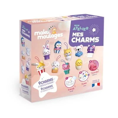 Mako Moulages Mon Atelier Mes Charms Complete DIY Creative Kit Mould for 9 Kawaii Animal Figurines in Plaster Creation of Keyrings and Bag Jewellery from 8 Years Old Made France