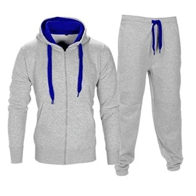 MALAIKA ® Kids Unisex Boys Girls 2Pcs Tracksuit Contrast Fleece Zipper Hoodie Top Bottoms Jogging Joggers Gym School Sizes in Age 7/8 to 13 Years Grey Blue