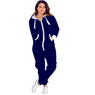 MALAIKA ® Womens Plain Zipper Onesie Ladies Onepiece All in One Hooded Zip Up Overall Plus Sizes Jumpsuit Playsuit Small 5XL (UK 8 UK 22) Navy