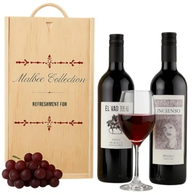 🍷 Argentinian Malbec Duo – Includes El Vaquero and Incienso Malbec showcasing rich fruit character and smooth tannins. 🍇 El Vaquero Malbec delivers rich notes of blackberry, plum, and dark chocolate with smooth tannins and a lingering, velvety finish that defines Mendoza craftsmanship. 🌿 Incienso Malbec offers aromas of ripe cherry, violet, and spice with a hint of oak, delivering balance, depth, and the bold character of Argentinian red wine. 🎁 Luxury Wine Gift Set – Ideal for birthdays, anniversaries, celebrations or thoughtful gifts for wine lovers. ✨ Premium Ready-to-Gift Presentation – Two 75cl bottles beautifully displayed in a stylish wooden double gift box.