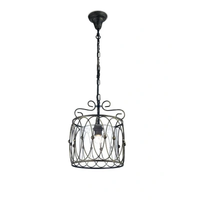 Malcolm Caged Ceiling Pendant 1 Light E27 Black, Gold with Clear Glass