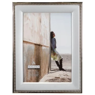 CLASSIC DESIGN: 5x7 inch silver metal frame with beaded shiny silver outer border; wide style moulding; horizontal or vertical tabletop or wall display; flocked back PREMIUM QUALITY MATERIALS: Metal with beaded outer border; Durable Glass; removable velvet back to easily change photos; easel back for horizontal or vertical display; attached hardware on back for wall display ALLURING LOOK: This silver metal frame features a shiny silver beaded outer border. Frame holds (1) 5” x 7“ photo within a 4.5” x 6.5“ display opening. Product Dimensions: Approximately 6.75” (W) x 8.75” (H) x 1” (D) PERFECT FOR EVERY APPLICATION: Showcase your treasured photos with Malden’s sleek and stylish 5x7 two toned silver metal Picture Frame. Attractive design, perfect for any home or the office, this frame is guaranteed to add new life to your space. Also makes a great gift for birthdays, holidays and more! SECURE PACKAGING: Shipped in secure padded packaging for corner-to-corner protection
