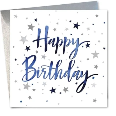 Male Birthday Card for men. Stars design with foil. Cards Men Brother Uncle Friend Son Nephew, silver envelope. 150x150mm when folded. Made in Britain