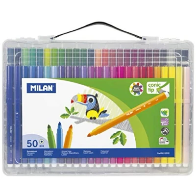 Estuche transparente 50 rotuladores Punta cónica Base agua