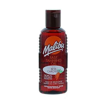 Tan Enhancing: Rapidly build a bronzed glowing tan with Malibu’s Beta Carotene Tanning Oil. Added Beta oil aids your skin’s natural tanning process; giving you that natural long-lasting radiance you desire Kind to Skin: Malibu sun care is cruelty-free and suitable for all skin types being soft and gentle on skin Vitamin Enriched: Nourish your skin with moisturising Vitamin E and reap the benefits of Beta Carotene; which your body turns into Vitamin A; essential for the skin’s production of collagen Easy Application: Malibu’s simple squeeze bottle allows a straight-forward hassle-free application process with full coverage Tropical Fragrance: Lather your skin with Malibu’s iconic tropical coconut scented tanning oil; with every drop leaving your skin smelling beautiful