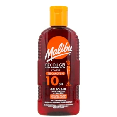Malibu Sun SPF 10 Non Greasy Dry Oil Gel with Beta Carotene and Coconut Oil, Water Resistant, 200ml