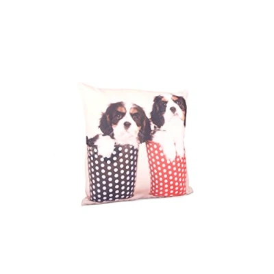 Malini Pups in Cups Cushion, Multicolour