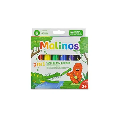 MALINOS 301036 Wax Crayon Magic 3 in 1 Pencils, Colouring Pencil, Painter, Watercolour, 6 Pieces, Colours (Pack of 1)
