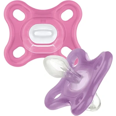 MAM Comfort All Silicone Soothers 0 3 Months (Pack of 2), Soft and Light soother, Premature Newborn Essentials, with Self Sterilising Travel Case, Pink