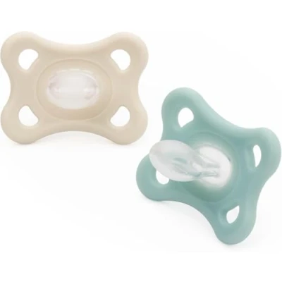 MAM Comfort All Silicone Soothers 3 12 Months Size 2 (Pack of 2), Lightweight Baby Soother, Newborn Essentials with Self Sterilising Case, Grey (Designs May Vary)