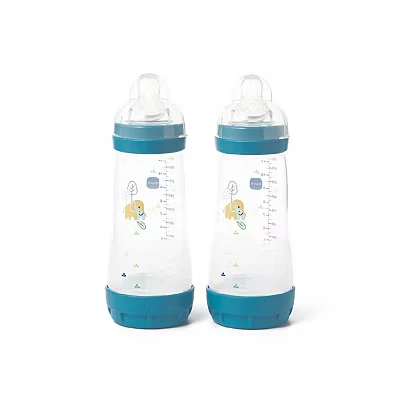 MAM Easy Start Anti Colic 320ML Bottle 2PK Blue (2 x 320 ml), Fast Flow Teats Size 3, Reduced Baby Bottle, Essentials