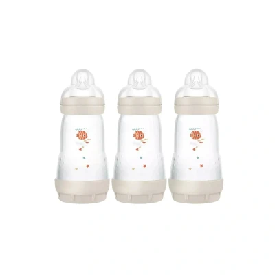 MAM Easy Start Self Sterilising Anti Colic Bottle Pack of 3 (3 x 260 ml), Baby Bottles with Medium Flow Teats Size 2, Newborn Essentials, Seashell (Designs May Vary)