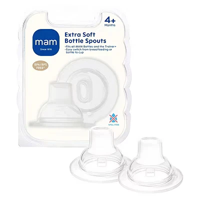 MAM Extra Soft Bottle Spouts, Suitable for 4+ Months, Teats with SkinSoft Silicone, Fits all Baby Bottles, Feeding Essentials, Pack of 2