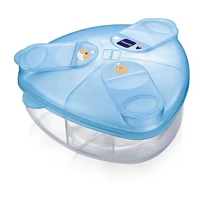 MAM Milk Formula Dispenser, Powder Dispenser Pot Stores 40 g Per Serving, Storage Holds Three Servings, Baby Box, Blue, (Designs May Vary)