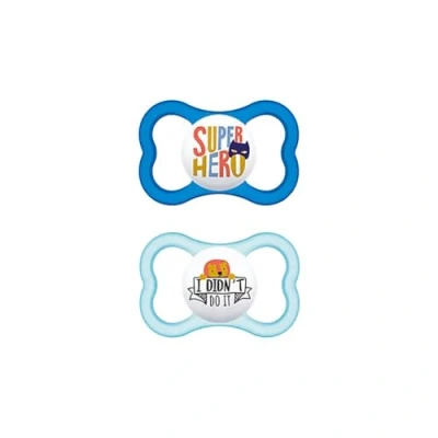 MAM Pacifier with Ventilated Shield, from 16 Months, Symmetrical, Flat and Flexible Silicone Teat of Easy Acceptance, Self Sterilizing Box, Air, Matte Blue, Pack 2