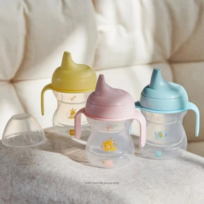 Babies learn the transition from breastfeeding or a baby bottle to a glass step by step Patented anti-leak system, the liquid flows only when baby drinks Spill-free with valve or free-flow without valve, soft spout Does not contain bisphenol-A Perfect product for babies of all ages Note: One colour assorted unit of the product will be delivered