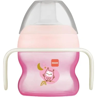 MAM Starter Cup and Glow in the Dark Handles, Baby for 4+ months, Feeding, Toddler Cup, 1x 150 ml, Pink (Designs May Vary)