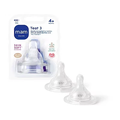 MAM Teats Size 3, Suitable for 4+ Months, Fast Flow with SkinSoft Silicone, Fits all Baby Bottles, Feeding Essentials, Pack of 2