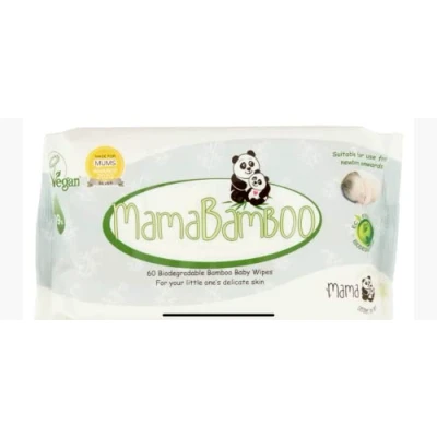 Mama Bamboo Eco Baby Wipes are made from 100% bamboo viscose, infused with purified water and aloe vera for gentle, effective cleaning. Compostable and eco-friendly, each pack of 60 wipes supports a sustainable lifestyle while caring for your baby’s delicate skin.