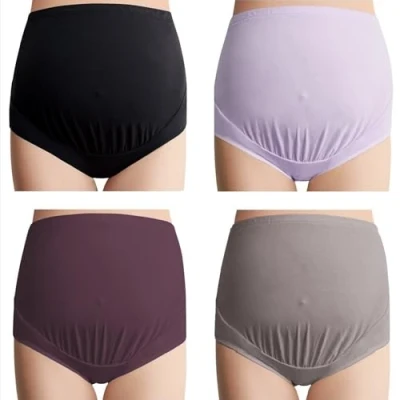 Mama Cotton Women's High Waist Maternity Underwear Over The Bump Panties 4 Pack (XX Large, Multi C)