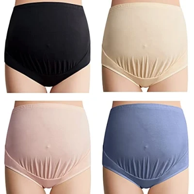 Mama Cotton Women's High Waist Maternity Underwear Over The Bump Panties 4 Pack (XXX Large, Multi C)