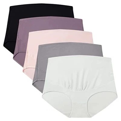 Mama Cotton Women's Over The Bump Maternity Panties High Waist Full Coverage Pregnancy Underwear (Color Multicolor B 5 Pack, Size M)