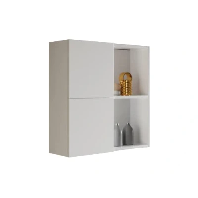 Mama Store Atena Double Wall Mount 2 Doors with open compartments, Wood, Glossy White Lacquered, L.71 x P.22 H71 CM