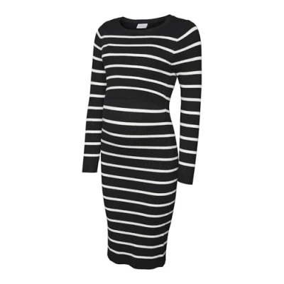 MAMALICIOUS Women's Mlnewsiv June Ls UK Knit Dress 2f A Noos, Black/Stripes: Snow White, XL