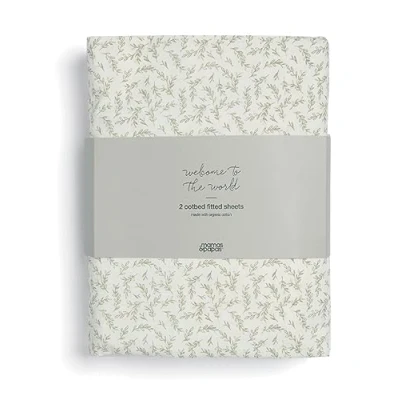 Mamas & Papas 2 Pack Cot/Bed Fitted Sheets, Seedling Leaf